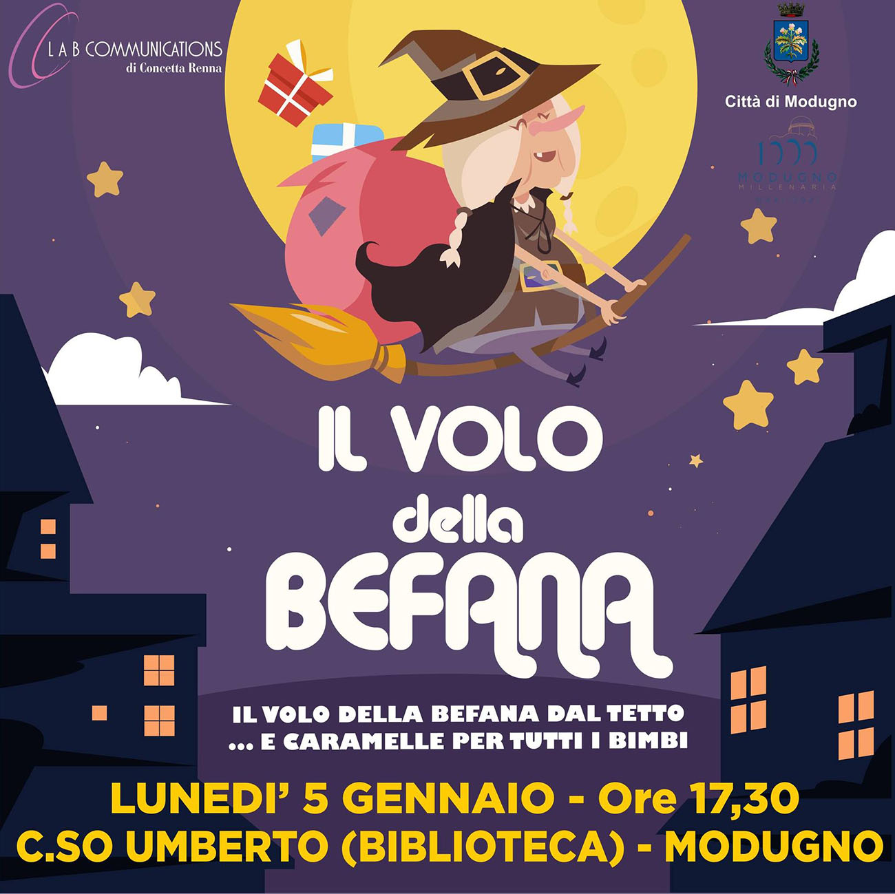 Il Volo della Befana 5 gennaio – start ore 17:30 Modugno Lunedì 5 gennaio, tutti col naso all’insù per guardare il volo della Befana danzante, che con un’acrobatica discesa dal…