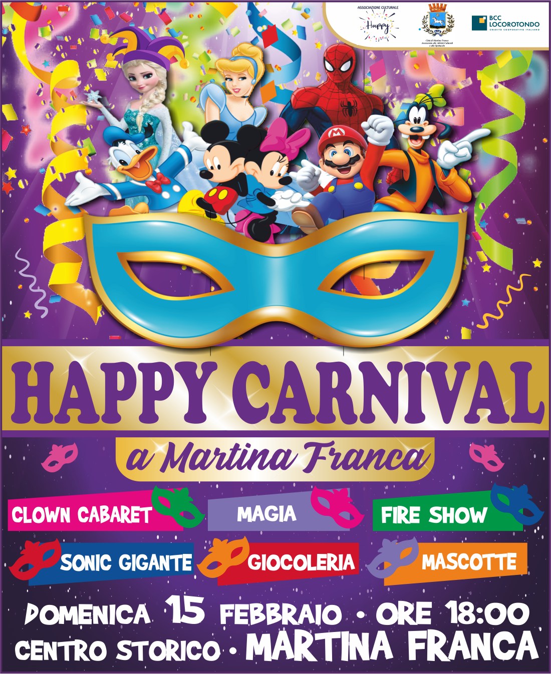 Happy Carnival Martina Franca 15 febbraio – start ore 18:00 Pioggia di coriandoli e stelle filanti domenica 15 febbraio, dalle ore 18:00, nel centro storico di Martina Franca. Un pomeriggio…